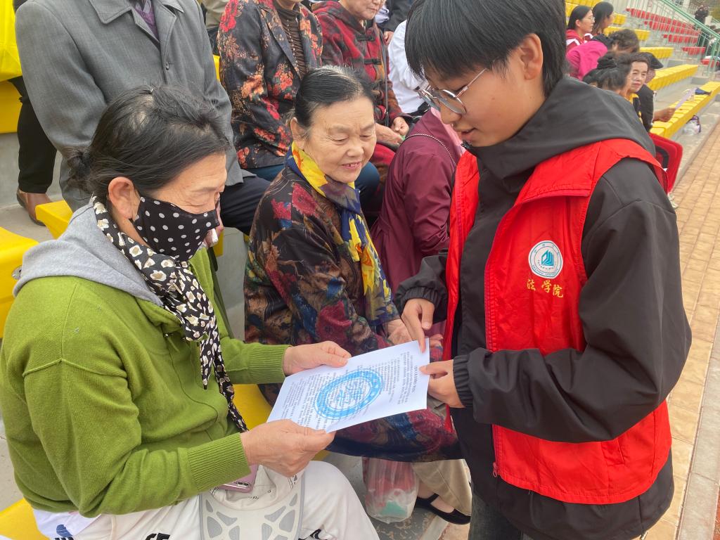 活动伊始,由南龙社区书记进行致辞,随后法学院师生通过发放宣传单页,向老年人讲解宣传《中华人民共和国老年人权益保障法》的相关日常知识,通过在现实中发生的案例,提醒老年人维护自身合法权益,谨防上当受骗。最后,法学院学生与南龙社区居民共同进行趣味运动会活动,活动赛场上,同学们与社区居民团结合作、奋勇争先,整个赛场洋溢着欢乐、轻松、健康的气息!