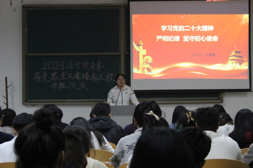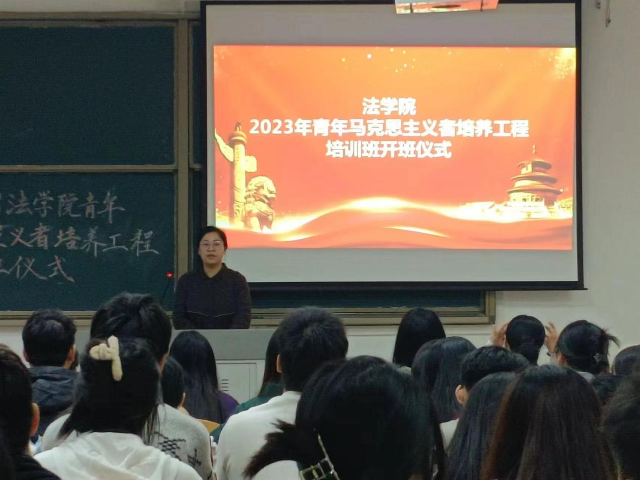 为深入学习贯彻习近平总书记关于青年工作的重要论述,推动“青年马克思主义者培养工程”的走深走实,引导青年学生骨干坚定理想信念、厚植家国情怀,2023年10月25日下午,法学院于博文楼427教室召开2023年青年马克思主义者培养工作大学生骨干培训班开班仪式。法学院党委副书记、团委书记及法学院2023年青马班全体学生参加了本次开班仪式。